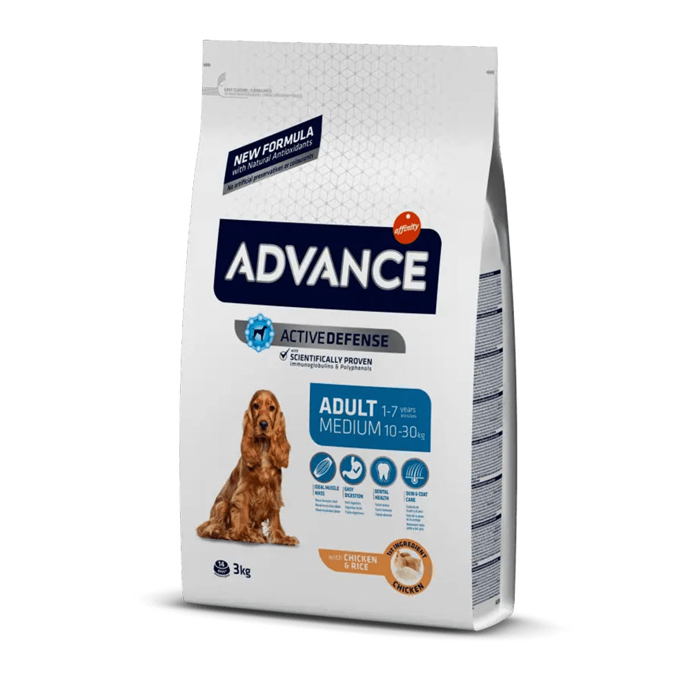 Advance Salmone e Riso Adult Medium è un alimento di alta gamma facilmente digeribile, formulato per rispondere alle loro particolari esigenze, che aiuta a rinforzare le difese e le barriere naturali e a mantenere una massa muscolare ottimale, la salute dentale e intestinale, la pelle sana e il pelo lucido.