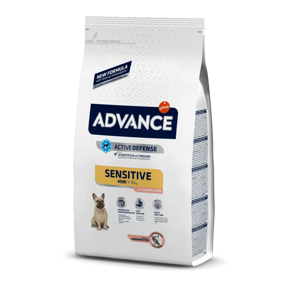 Advance Sensitive Salmone e Riso è un alimento completo ed equilibrato, specificamente formulato per cani adulti di taglia mini (<10 kg) con sensibilità digestiva.La sensibilità digestiva può manifestarsi con cattiva digestione e, occasionalmente, con sintomi cutanei.