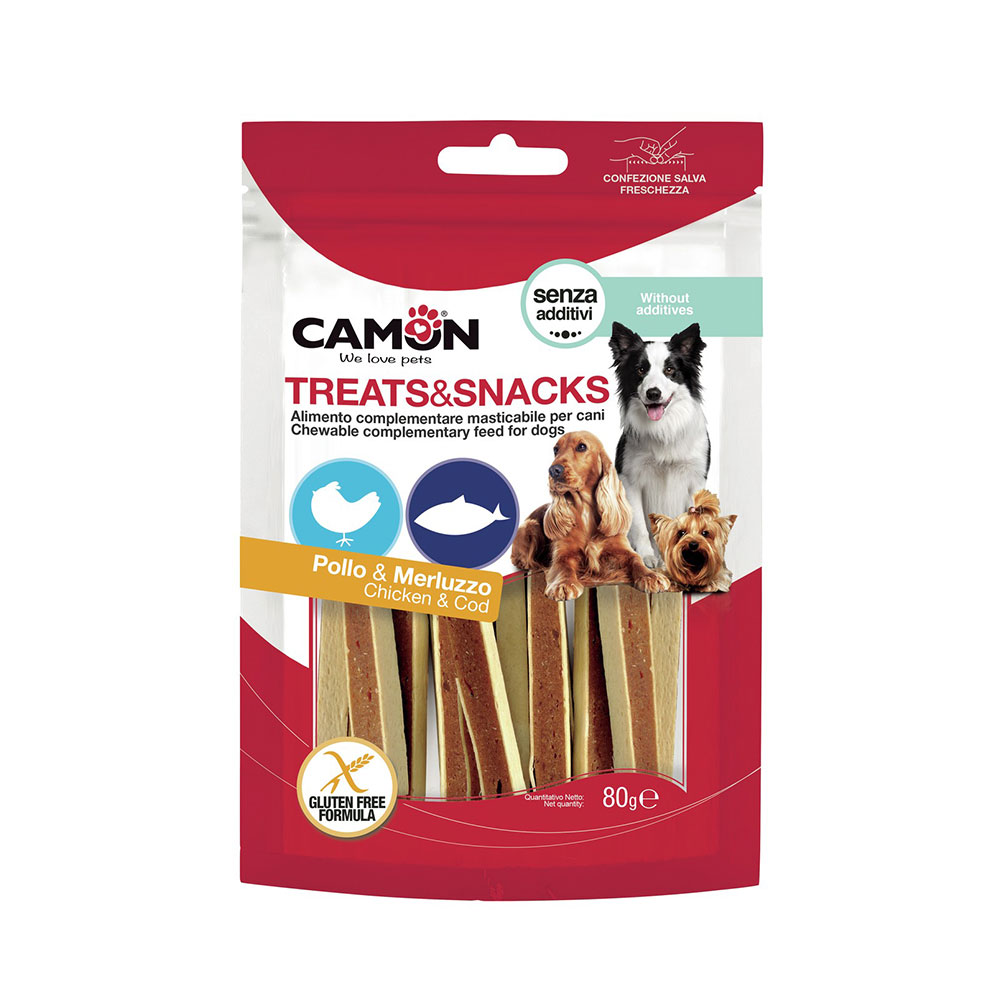 Sfiziosi sandwich di pollo e merluzzo, un utile alimento complementare masticabile per il cane.