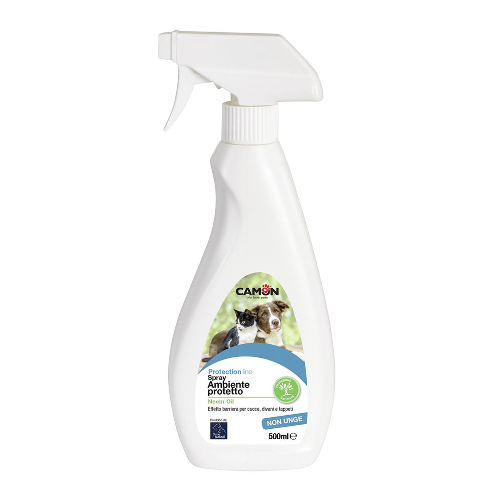 Questo Spray Protettivo per ambienti, grazie alla sinergia di olio di Neem e oli essenziali di menta e limone, crea un effetto barriera su cucce, divani, tappeti, piante ornamentali, tappezzerie dell’autovettura e su tutte le superfici a contatto con bambini e animali domestici.