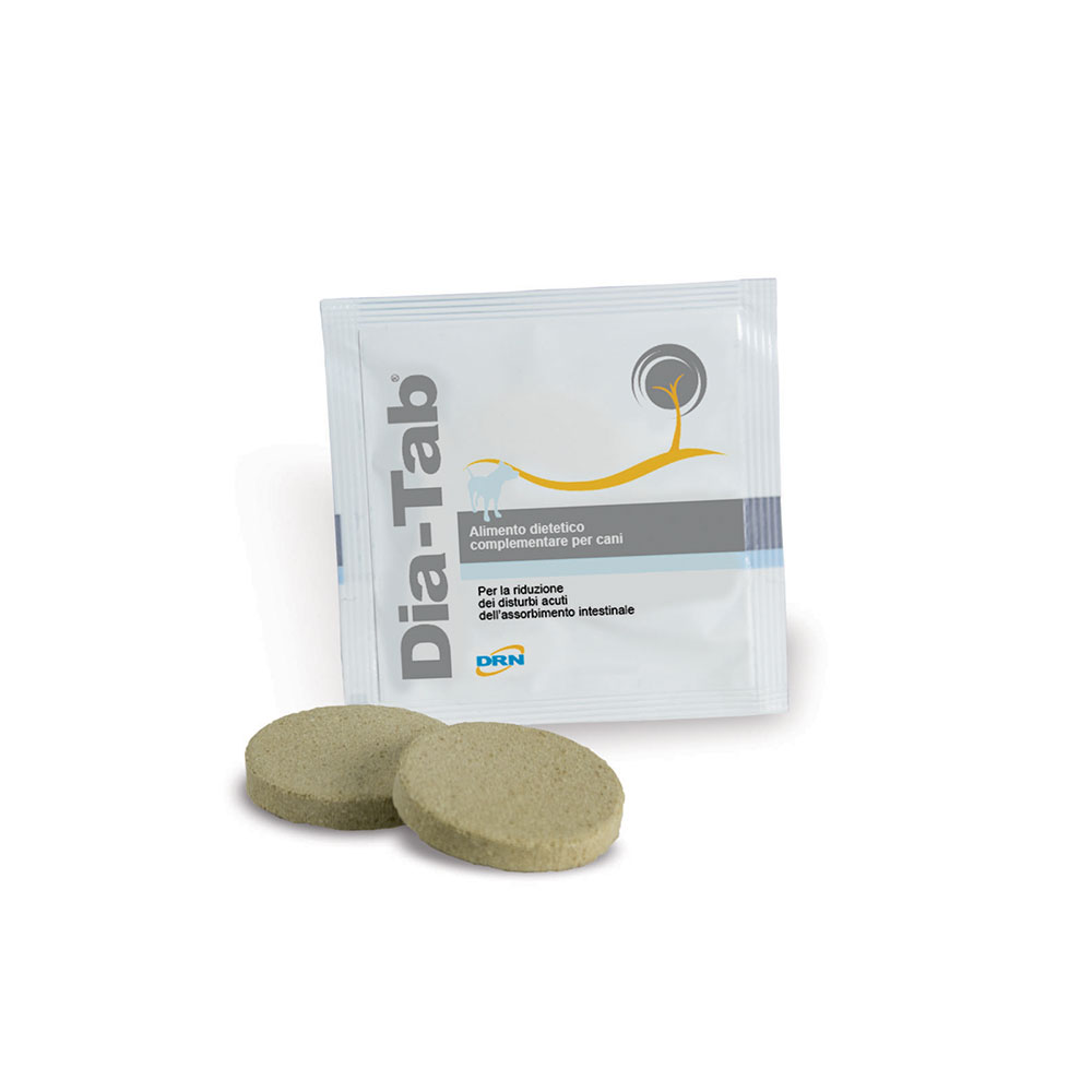 Dia-Tab – Alimento dietetico complementare per cani. Indicato per la riduzione dei disturbi acuti dell’assorbimento intestinale.