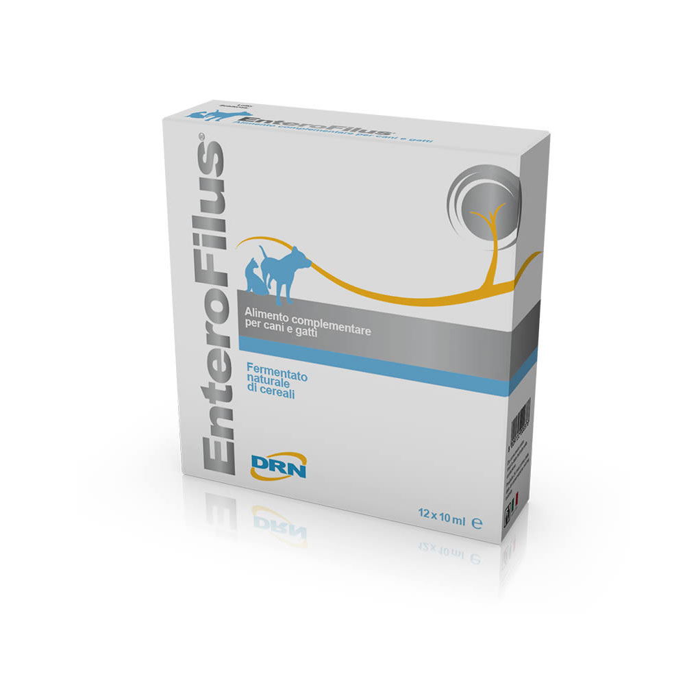 EnteroFilus è un alimento complementare per cuccioli e adulti di cane e gatto, in forma liquida facile da somministrare.