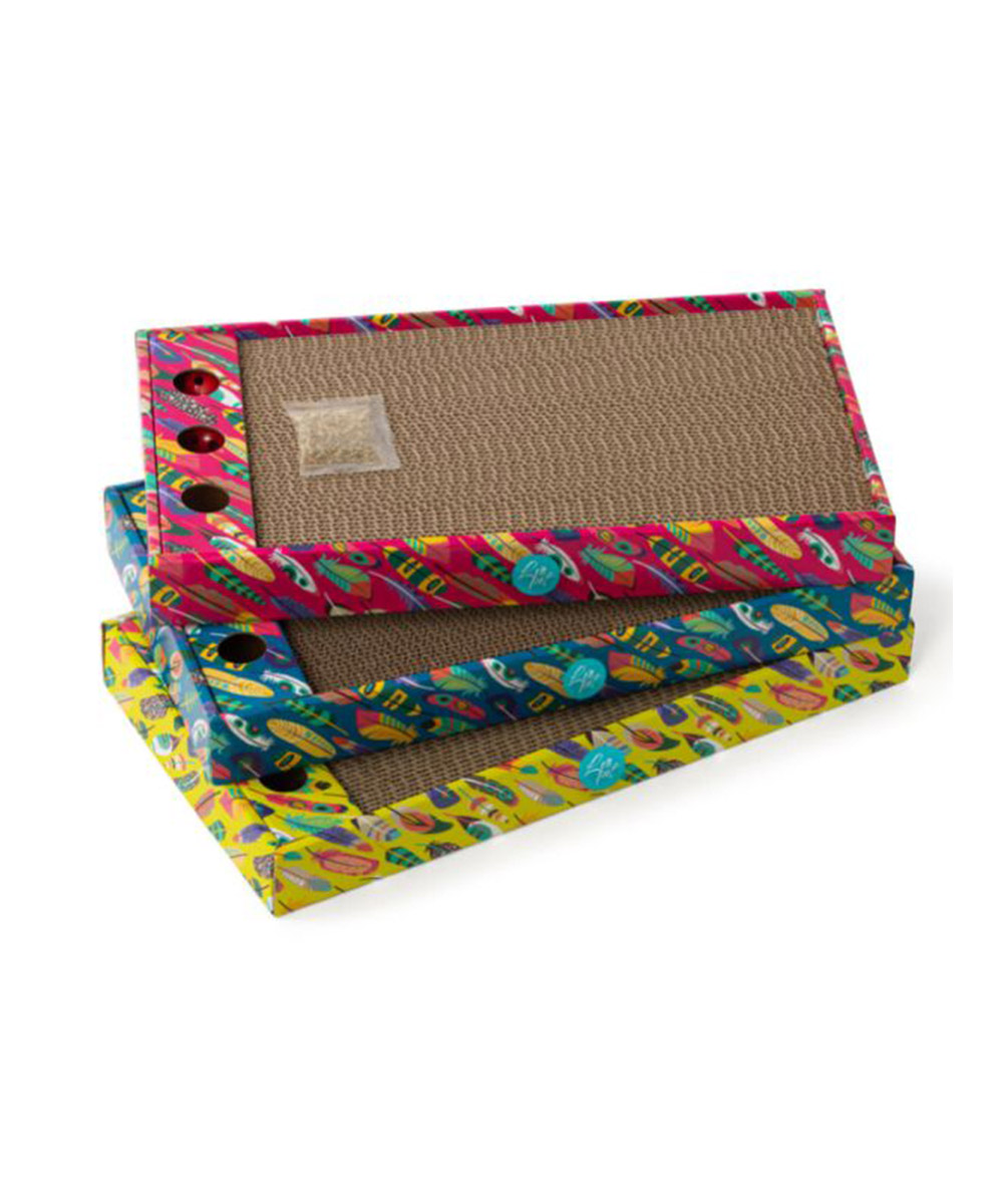 Tiragraffi Leo Pet Fun è realizzato in cartone con bande colorate ed erba gatta. Irresistibile per tutti i felini e particolarmente durevole.