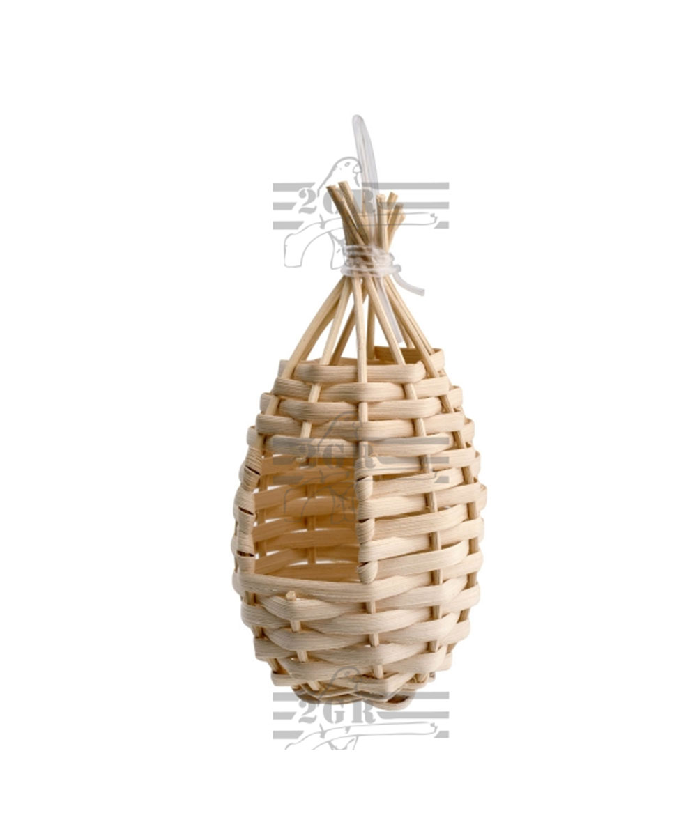 Nido a pera, realizzato completamente in vimini intrecciato, adatto per uccelli esotici sia africani che australiani, in quanto riproduce la forma dei nidi che questi uccelli costruiscono in natura. A tal proposito il nido a pera in vimini è consigliato per la riproduzione, sia in gabbia che in voliera, di diamanti mandarino e diamanti australiani in generale, gola tagliata ed Amadine , passeri del Giappone, ecc.