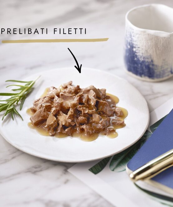 Raffinati filettini preparati con ingredienti selezionati, elegantemente abbinati a delicate verdure e serviti in una salsa prelibata, per soddisfare il palato esigente del tuo gatto.