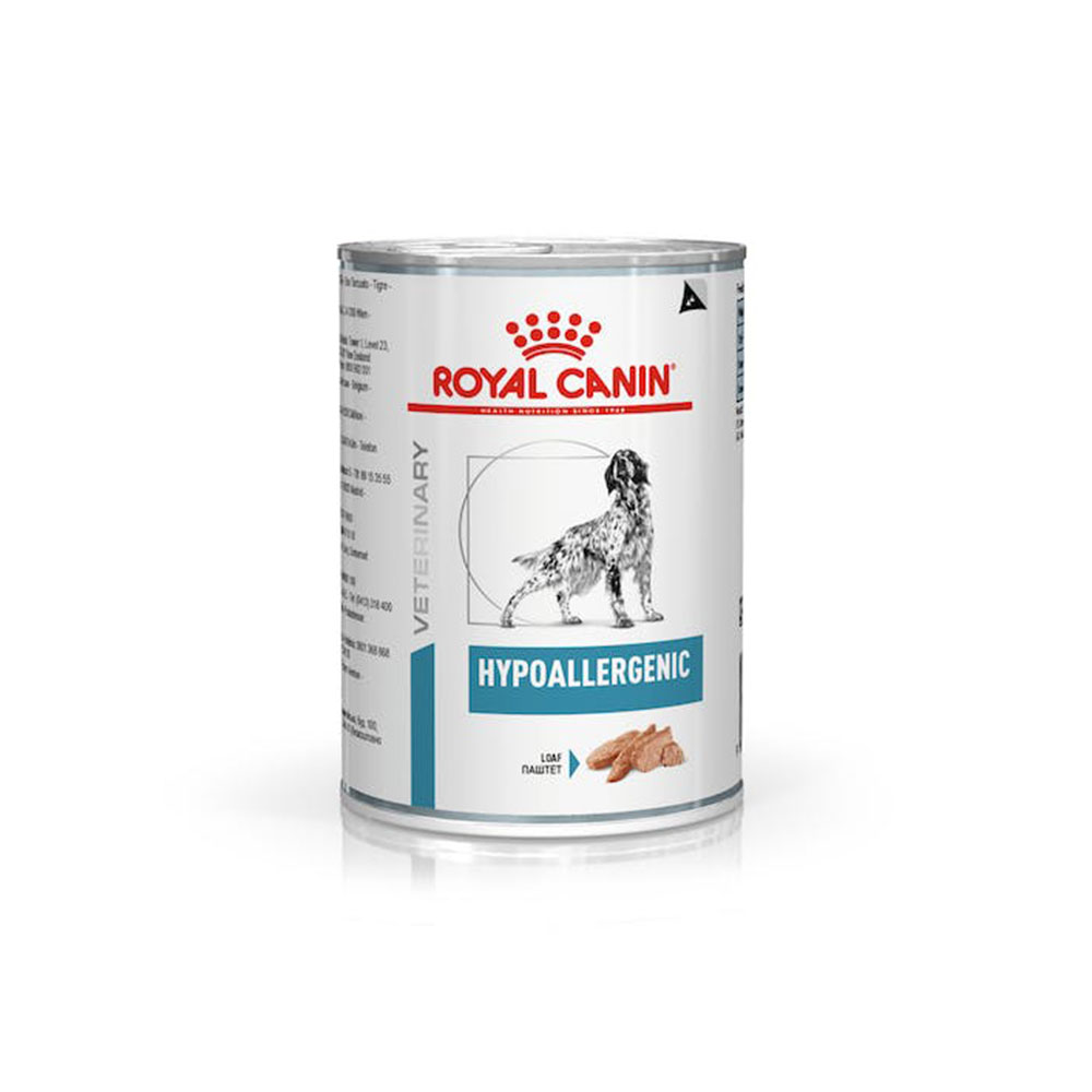 ROYAL CANIN HYPOALLERGENIC morbido paté è un alimento dietetico completo per cani destinato alla riduzione delle intolleranze ad ingredienti e sostanze nutritive.